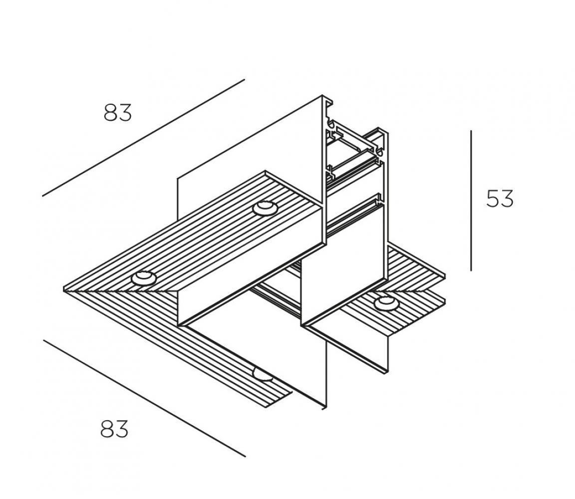 Трек отличается компактными размерами: ширина трека всего 25 мм. Полностью отсутствует видимая рамка. Встраиваемый трек обладает небольшой глубиной: 54 мм, с учётом толщины гипсокартона. Запотолочное пространство будет минимальным: 40 или 30 мм, в зависимости от толщины используемого гипсокартона. Трек крепится к стандартным профилям для гипсокартона. Это удобно и обеспечивает простую и быструю установку системы. Монтаж отличается минимальным слоем шпаклевки. Специальный паз для саморезов позволяет правильно распределить толщину шпаклевки: толстый слой в самом пазе, чтобы скрыть саморезы, и минимальный слой на всей поверхности потолка